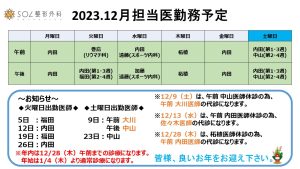 2023.12月の医師勤務表を更新しました。