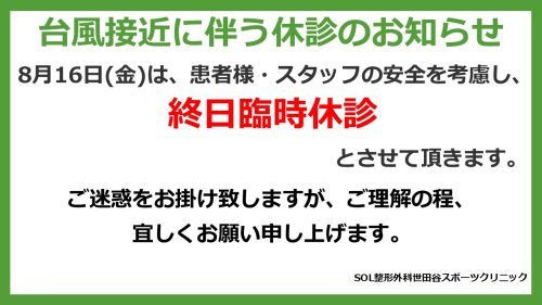 8月16日(金)台風に伴う臨時休診のお知らせ