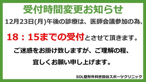 2024.12月23日(月)午後受付時間変更のお知らせ