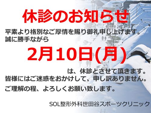 2月10日(月)休診のお知らせ
