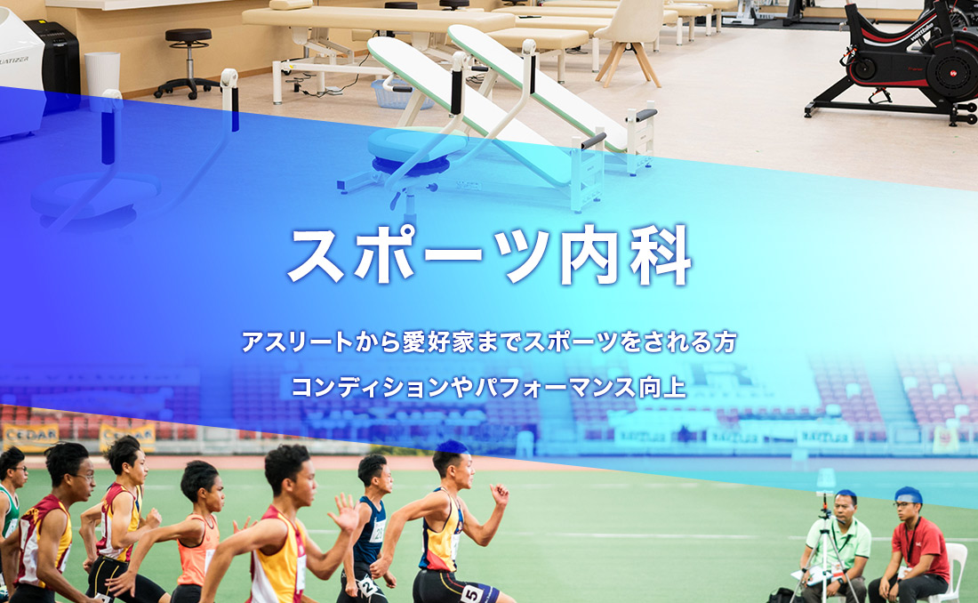 アスリートから愛好家までスポーツをされる方々のコンディションやパフォーマンス向上、長く安全に競技を続けられるために内科的問題の予防や治療を行う診療科となります。